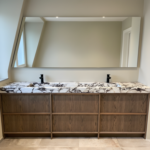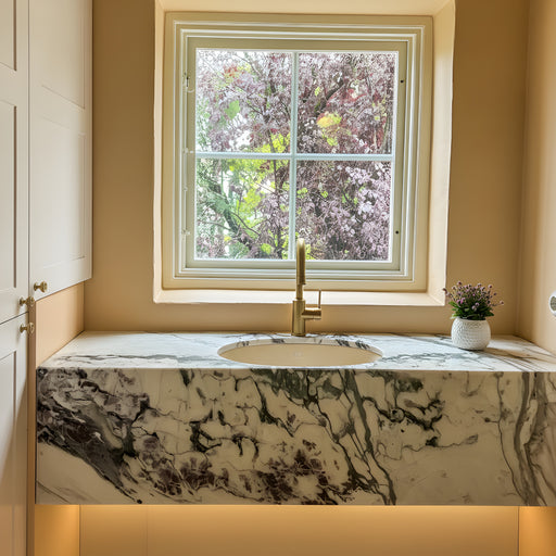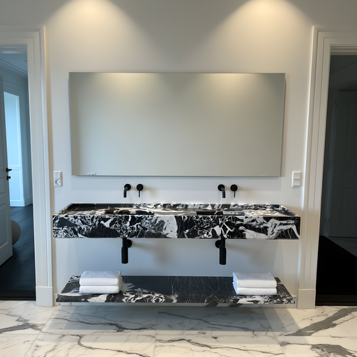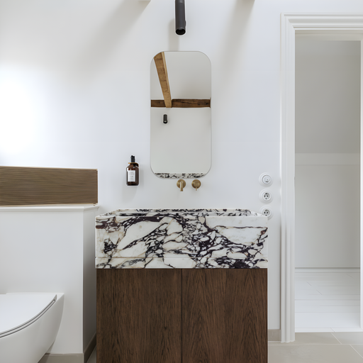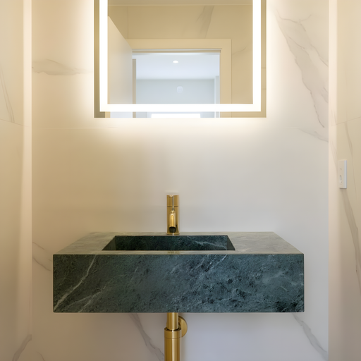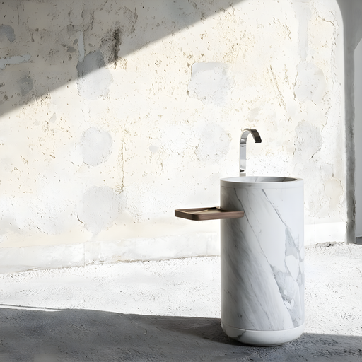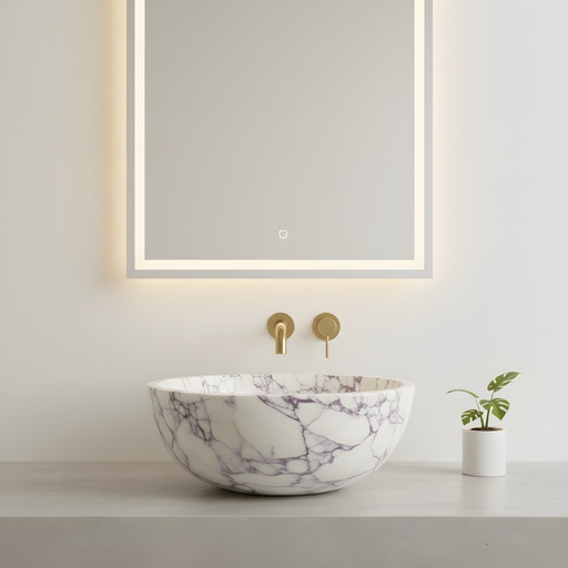 Marmor håndvaske i ægte natursten — hver vask er unik med sit eget mønster af årer og farvetoner. Vælg mellem fritstående og væghængte håndvaske i Calacatta, Carrara, Nero Marquina og mange flere eksklusive stentyper.